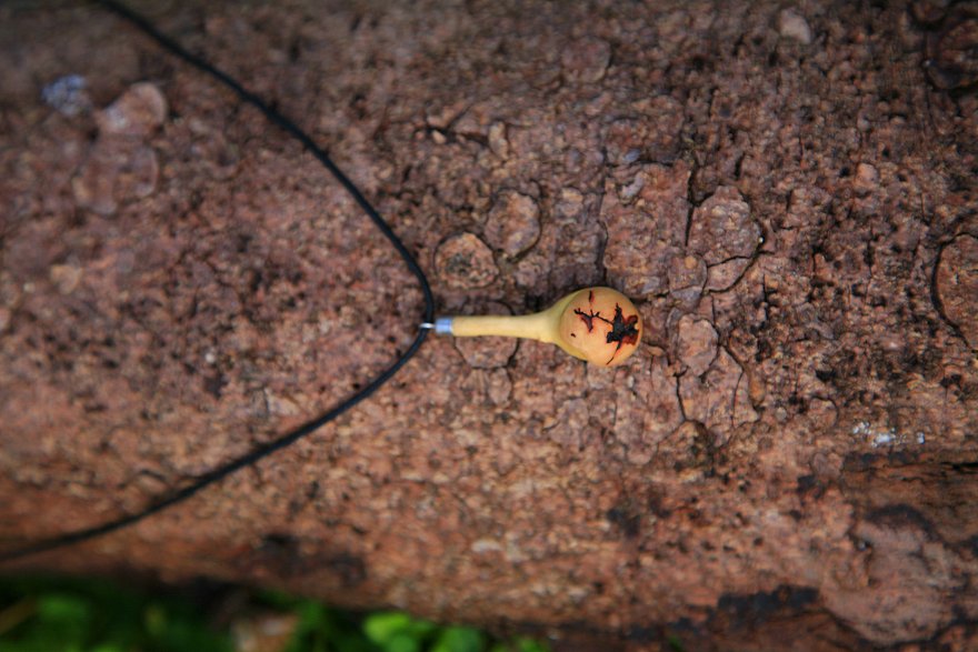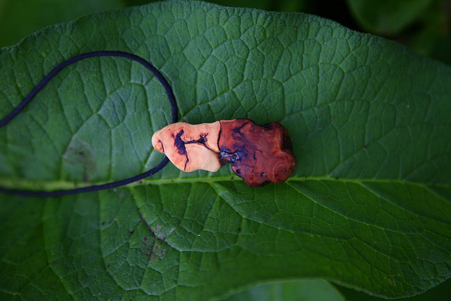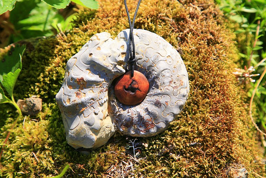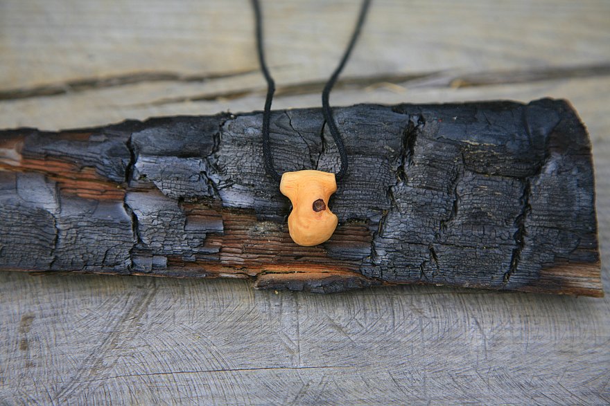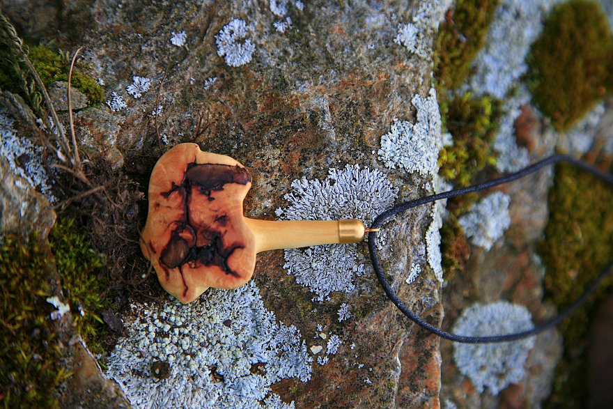 Wie fertigen unsere Anhänger aus den Verwachsungen an Ästen des Apfelbaumes und aus kleinen Knollen der Esskastanie.