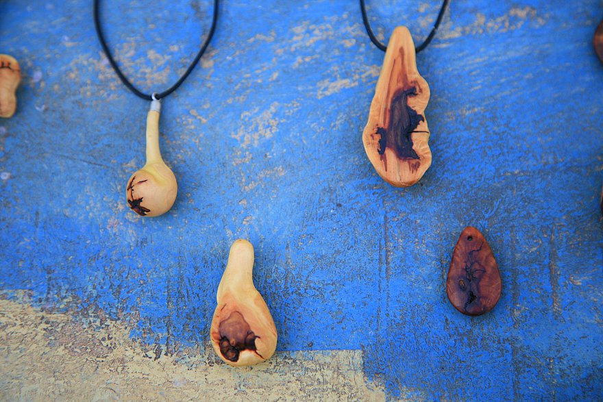 Die eher dreidimensionalen Anhänger werden weitgehend in Form belassen, seitenweise angeschliffen, poliert und gewachst.